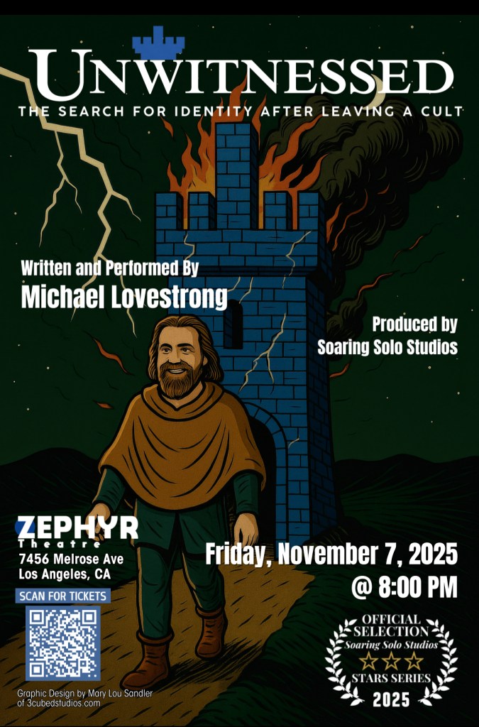 [NoHo Arts District, CA] – A NoHo Arts theatre review of Michael Lovestrong’s solo show UNWITNESSED: The Search for Identity After Leaving a Cult, directed by Jessica Lynn Johnson as part of the Soaring Solo Stars Series.